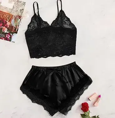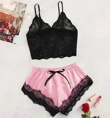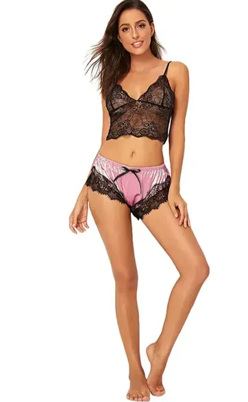 PIJAMA SEXY COLORES ROSA Y NEGRO CON ENCAJE